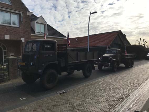 Op deze vierde april 2020 stonden aan de Oostwal een aantal prachtige, oude legertrucks. Zij komen uit de verzameling van Bennie Heisterkamp en het zijn legertrucks uit de Tweede Wereldoorlog. De foto’s laten zien in welke goede staat de voertuigen nog zijn en ze hadden meegereden als de bevrijdingsoptocht in Ootmarsum was doorgegaan. Door ze nu aan de Oostwal te stallen, hebben veel Ootmarsummers toch nog kunnen genieten van deze trucks.