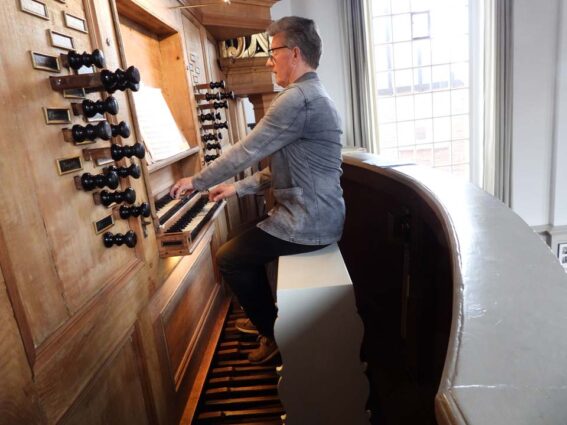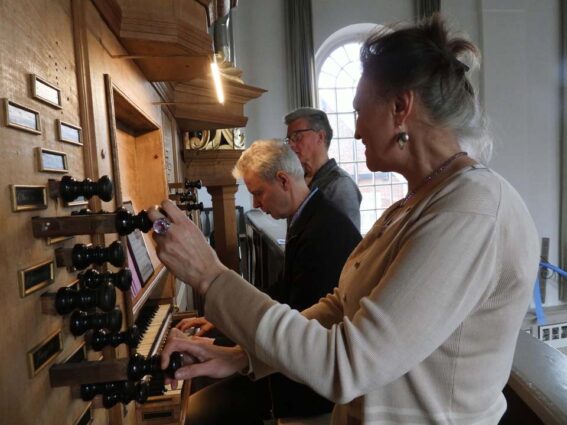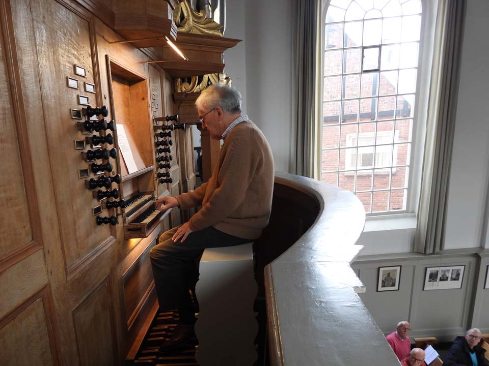 Tijdens deze bijeenkomst kon het publiek genieten van het orgelspel. Op geheel eigen wijze liet vaste organist Herman Koops drie stukken horen met onder meer een eigen bewerking. Tweede organist Henk Linker liet de aanwezigen ‘voelen’ welke mogelijkheden het orgel in zich heeft. Hij deed dat met variaties op Psalm 100 en het bijzondere was dat de componist van dit muziekstuk, Dick Sanderman, in de kerk zat.