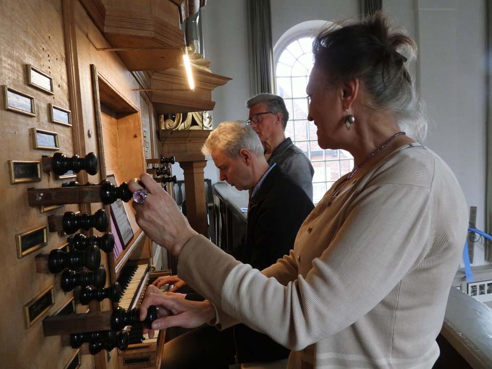 Erik Winkel, directeur van Flentrop, en orgeladviseur Aart van Beek vertelden en lieten horen welk een diversiteit er in dit orgel te horen valt. Het was best een technisch verhaal, maar door het spelen werd het toch allemaal een stuk duidelijker. Erik gaf de nodige informatie over de mogelijkheden en Aart liet dit horen en vervolgens de diverse combinaties van registers en pijpen. De echte kenners zullen er met recht van hebben genoten.
