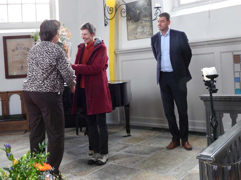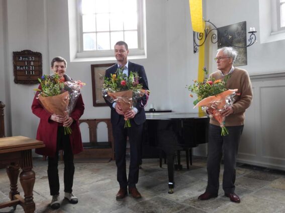 Dominee Roelof Kloosterziel sloot de bijeenkomst af met een welgemeend dankjewel aan vele betrokkenen. De subsidieverstrekkers, de fondsen, de weldoeners, de mensen, die allerlei acties hielden en al degenen, die een orgelpijp adopteerden of een gift overmaakten. “Ik wil ook iedereen bedanken, die ik niet bedankt heb, want je wilt niemand tekort doen en die wil ik ook zeker niet vergeten,” sluit de ceremoniemeester af. Tot slot waren er bloemen voor Erik Winkel, Aart van Beek en Ingrid Kirschner. Zij werden beloond met een hartverwarmend applaus voor hun ongebreidelde inzet om het orgel en het bijzondere karakter weer nieuw leven in te blazen.