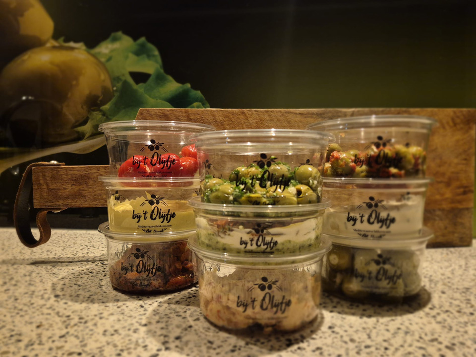 Het zelf maken van haar producten vindt ze één van de leukste dingen. “Het is bij mij vaak heel proefondervindelijk. Dus ‘gewoon’ proberen. Allerlei benodigde ingrediënten mix ik met elkaar en dan proeven. Als ik tevreden ben en de smaakbeleving is goed, dan heb ik weer een heerlijk recept klaar,” vertelt de kenner van onder meer tapas, olijven, pesto’s en tapenades. “Ik kan mijn liefde voor mijn producten absoluut kwijt. Sommige klanten zeggen wel eens dat ze nooit meer een andere smaak willen. Ik ben en blijf toch van het experimenteren om steeds weer een nieuwe smaak te proeven en dus te ontdekken. Wat dat betreft kan ik dat nog jaren doen.” Vele jaren is ze al actief, want vanaf 2009 is ze hiermee begonnen. ‘Bij ’t Olijfje’ heeft inmiddels een bekende klank en is op diverse ‘smakelijke podia’ met haar producten niet meer weg te denken.