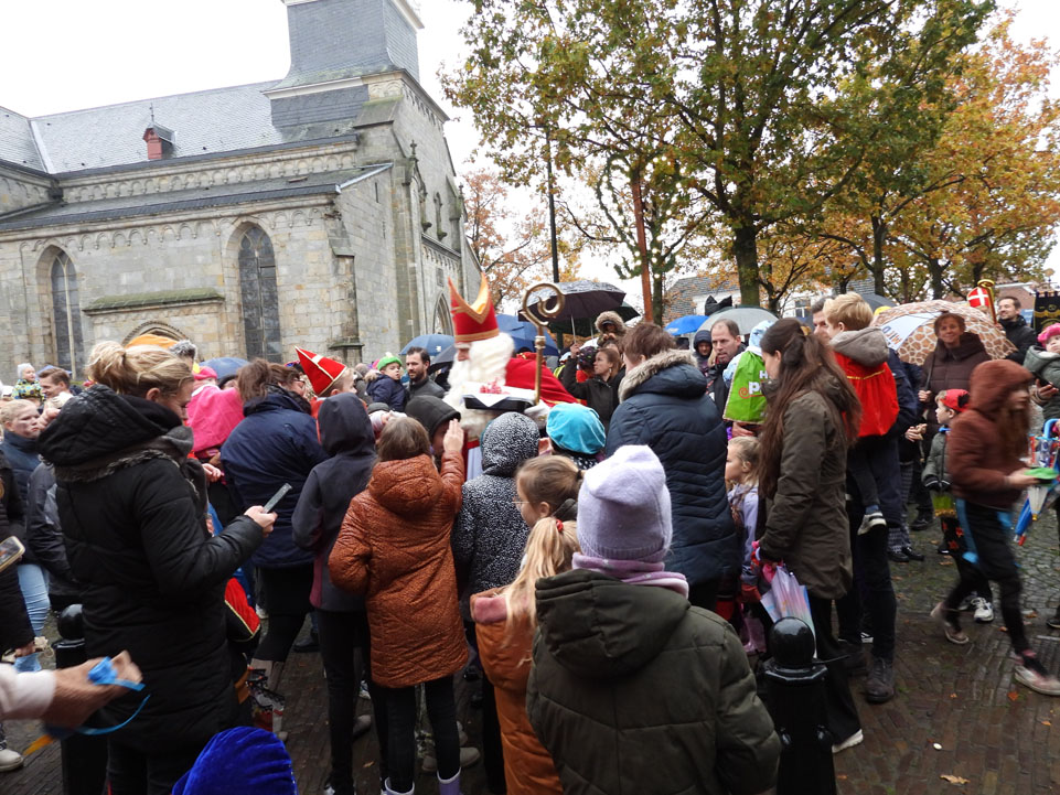 Op het moment dat harmonie Caecilia het Kerkplein op marcheerde volgde er een golf van opwinding onder alle aanwezigen. Wie van afstand toekeek zag vele Pieten laveren tussen de mensenmenigte om vooral de kinderen te voorzien van een handje snoepgoed. Daarnaast bewoog de zichtbare mijter van de Sint zich tussen de toeschouwers om stap voor stap en vooral handen schuddend en aandacht te hebben voor de kleintjes richting het vroegere gemeentehuis te gaan.