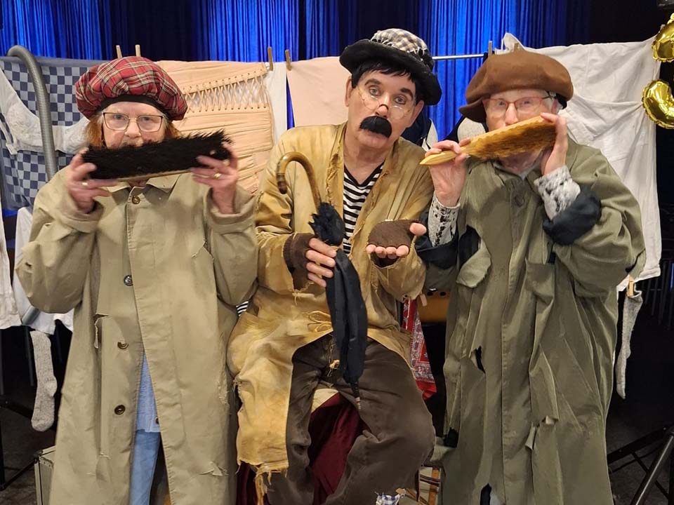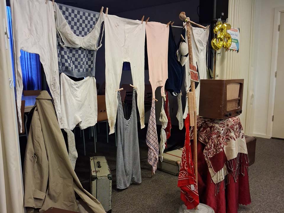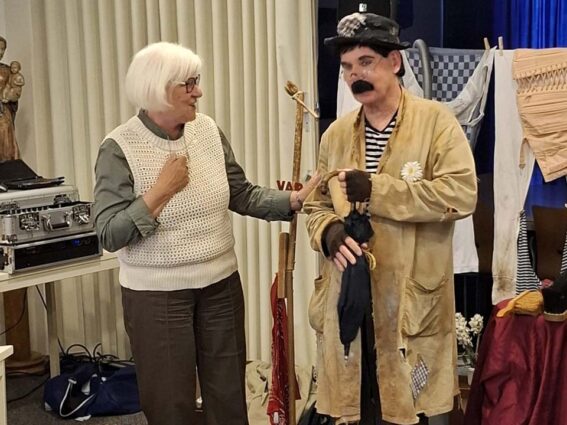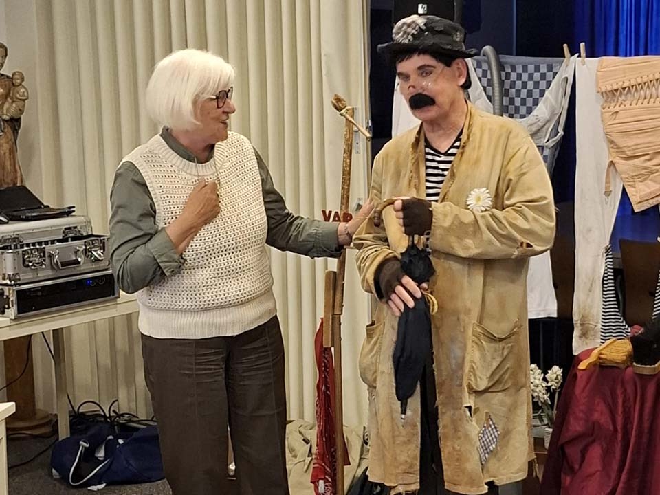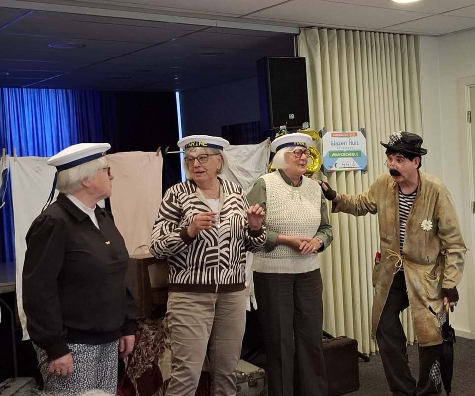 In een schitterend decor met oud wasgoed kwam Dorus op en werd hij met een groot applaus welkom geheten en kon het feest beginnen. Het werd een topmiddag. Dorus had aandacht voor iedere gast. En ze werden ook ingeschakeld bij verschillende onderdelen uit het programma. Marietje Masselink en Dinie Giezen traden op als straatmuzikanten. Zelfs de vrijwilligers Lucie Steghuis, Ans Nijhuis en Vera Voortman moesten aan de bak als matrozen. Dorus haalde vele grappen uit en zijn liedjes, die volop werden meegezongen, schalden door het Parochiecentrum. Kortom, het werd een topmiddag voor deze editie van de Ouderensoos, die werd afgesloten met een heerlijke snackparty. Iedereen ging lachend naar huis en iedereen zal de hele avond nog hebben nagenoten van deze prachtige feestmiddag.