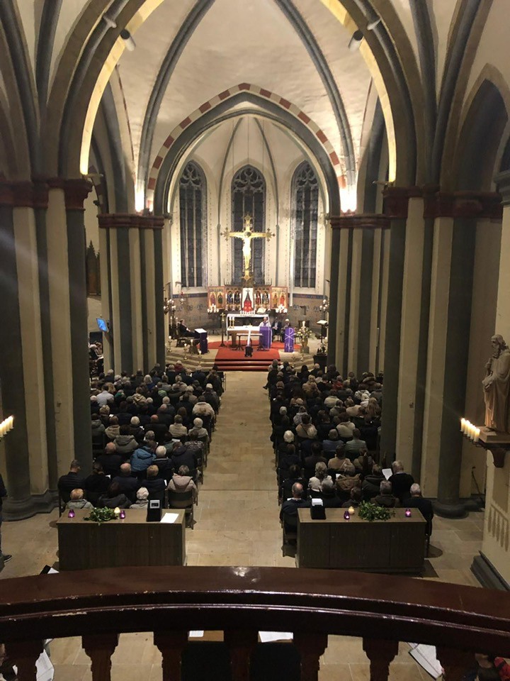 De viering met Allerzielen in de Simon en Judaskerk in Ootmarsum begon in het verleden met een kleine 200 bezoekers. Voor Corona groeide dat aantal naar een kleine 300 mensen. In 2025 zat de kerk tot de laatste plaats vol. Het voelde alsof ‘oude tijden’ herleefden. Een volle kerk en hoe hartverwarmend is het dat al deze mensen stil staan bij de overledenen in hun directe omgeving of in hun parochie of om een andere reden.