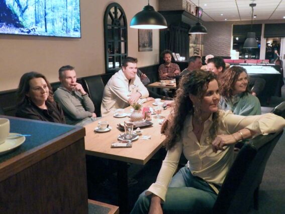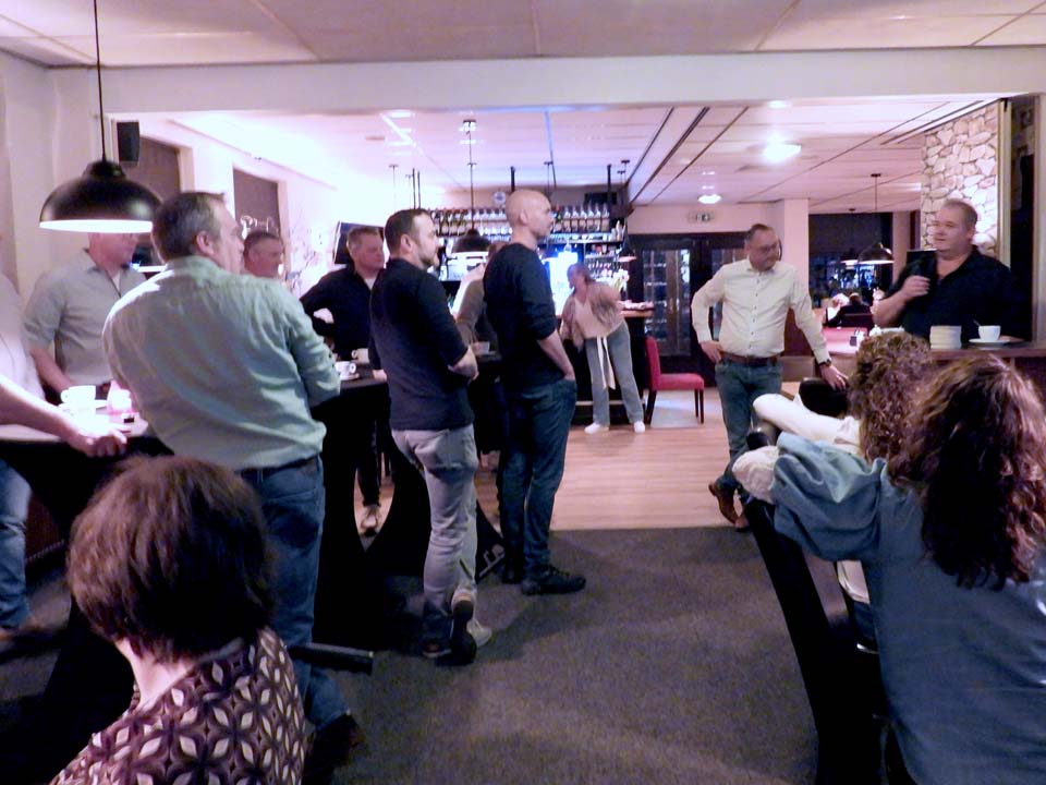 Na het openingswoordje door Annemarie Hulsmeijers kregen alle aanwezigen de microfoon om in één minuut iets kort over zichzelf te vertellen. Dus wie ben je, waar woon je, wat doe je en wat is je gezinssituatie. Mocht je dan naar huis gaan en iemand niet gesproken hebben, dan wist je in ieder geval wie waar gebleven was en wat hij of zij tegenwoordig doet.