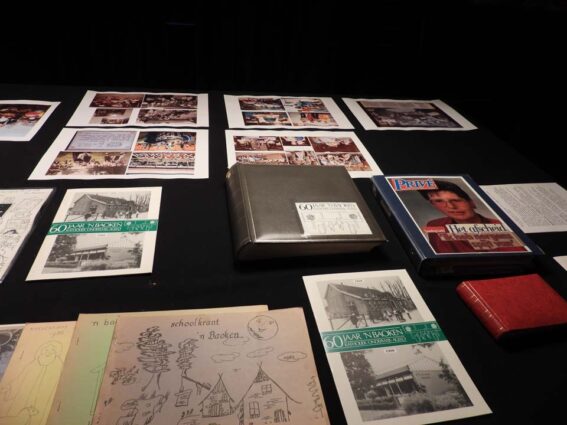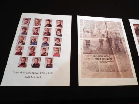 Aan de oproep om je eigen archief in te duiken, werd goed gehoor gegeven. Vele foto’s uit het verleden kwamen boven water en zelfs hele kunstwerkjes die destijds gemaakt waren door de kinderen en niet zijn ‘weggegooid’. Al dit moois werd deze avond tentoongesteld bij café restaurant Max in Agelo.