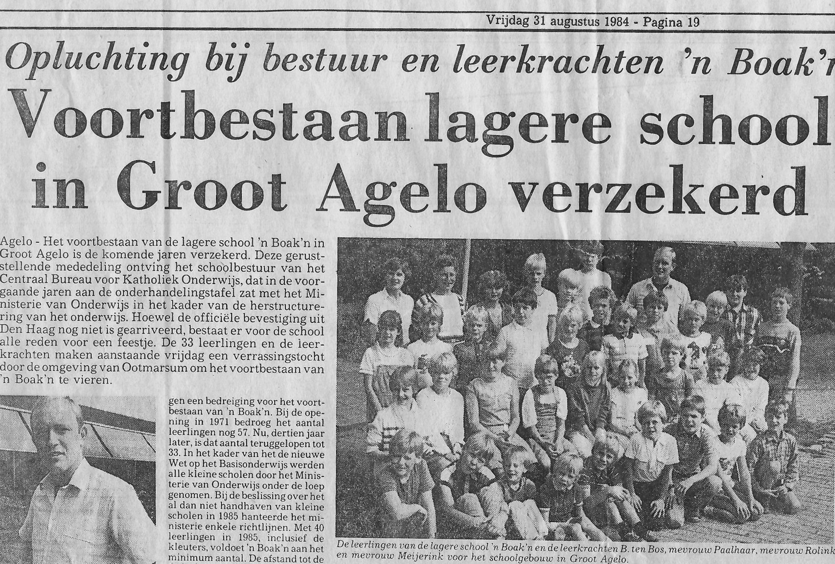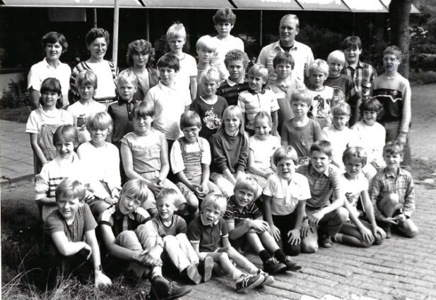 Het werd in het begin een ware zoektocht, want waar waren die leerlingen allemaal gebleven. Een aantal bleek honkvast, maar anderen vlogen uit. Ook moest er bepaald worden wie in die jaargang precies op school zat en dus uitgenodigd konden worden. Als basis werd gekozen voor een foto, die destijds in de Twentse Courant en ‘De Boerderij’ had gestaan. Het was een groepsfoto van iedereen, die nog op ’n Baoken zat. Het was het jaar van de overgang tussen lagere school en basisschool (01-08-1985). Deze leerlingen zaten in 194/1985 nog in klassen en het volgende jaar in groepen. Zo ging je het volgende schooljaar bijvoorbeeld van klas 4 ineens naar groep 7.