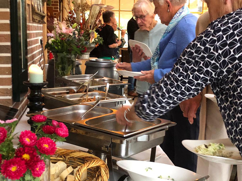 De laatste bijeenkomst bij café restaurant Rouwers werd niet alleen afgesloten met een heerlijk buffet, maar ook met het optreden van het duo Enig & Anders. Hans-Jurgen Oortmann en Marcel Punt zongen de mooiste levensliederen en zorgden ook voor de nodige humor.