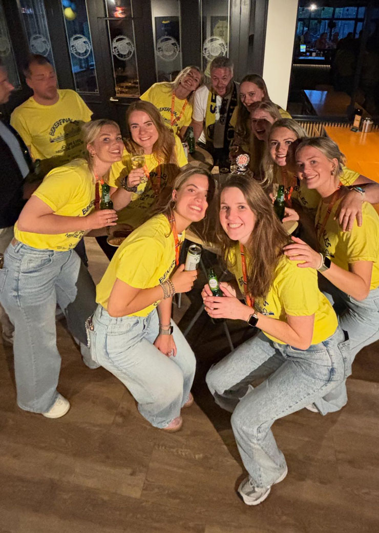 Daarna kon de supportersgroep met ruim 80 Set-Up ’65 leden zich opmaken voor de bekerfinale van het tweede damesteam van Lammerink Set-Up ’65. Het team bekroonde een prima seizoen al met het kampioenschap en de beker is dan de bekende kers op de taart. Het leverde tegen WIK Steenderen een spannende pot op. De eerste set was met 25-20 een prooi voor de Ootmarsumse meiden. In de tweede set gaf Set-Up ’65 een op het oog geruststellende marge bijna uit handen, maar na een knappe eindsprint won het tram van Marc Lohuis en Pim Bank met 27-25 deze cruciale set. Daarna was het een walk-ver en won Set-Up ’65 met 25-14 de laatste set.