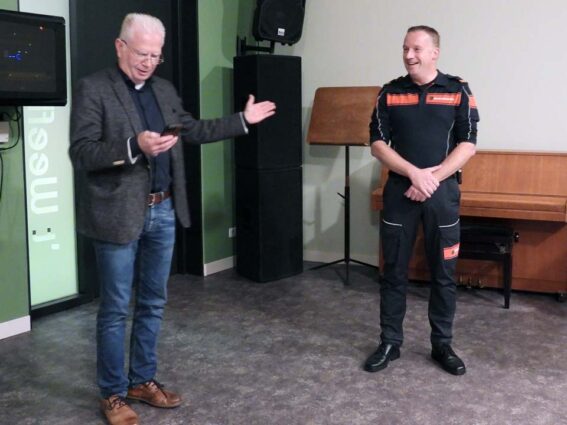 Dat was Ben Voorpostel, die ruim 30 jaar als vrijwilliger de veiligheid in en om Ootmarsum ‘bewaakte’. Voor een leek lijkt het er allemaal bij te horen, maar voor al die vrijwillige korpsleden is het werk intensief en met de regelmaat van de klok met veel impact. Op deze korpsavond werd namelijk ook stilgestaan bij de dood van een collega brandweerman uit Denekamp, die zelf koos om een einde aan zijn leven te maken. Het Ootmarsumse brandweerkorps werd als eerste opgeroepen om hulp te bieden. Dat gebeuren heeft ongelooflijk veel impact gehad op deze brandweerlieden. Wat is het dan goed dat er naderhand praatsessies zijn om dit allemaal te kunnen verwerken. “Er zijn voor elkaar” is makkelijk gezegd, maar het korps Ootmarsum wist dat ook zeer zeker in praktijk te brengen.