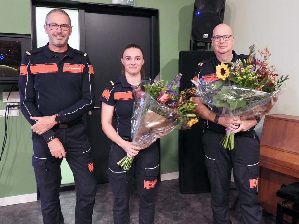 Met Tom, Ruben, Casper en Bjarne zijn er nieuwe manschappen bij. Hoe mooi is het dat Harald Schulten aan zijn zoon Bjarne het diploma mocht uitreiken. Samen zo trots op zo vader zo zoon om met elkaar de veiligheid in en om Ootmarsum in goede banen te leiden. Veel waardering ook voor Rachel Bloemen, die zich bevelvoerder en instructeur mag noemen. Een ambitieuze brandweervrouw, die nu al op jonge leeftijd van groot belang is voor het Ootmarsumse korps, maar ook voor de opleidingen voor brandweer Twente.