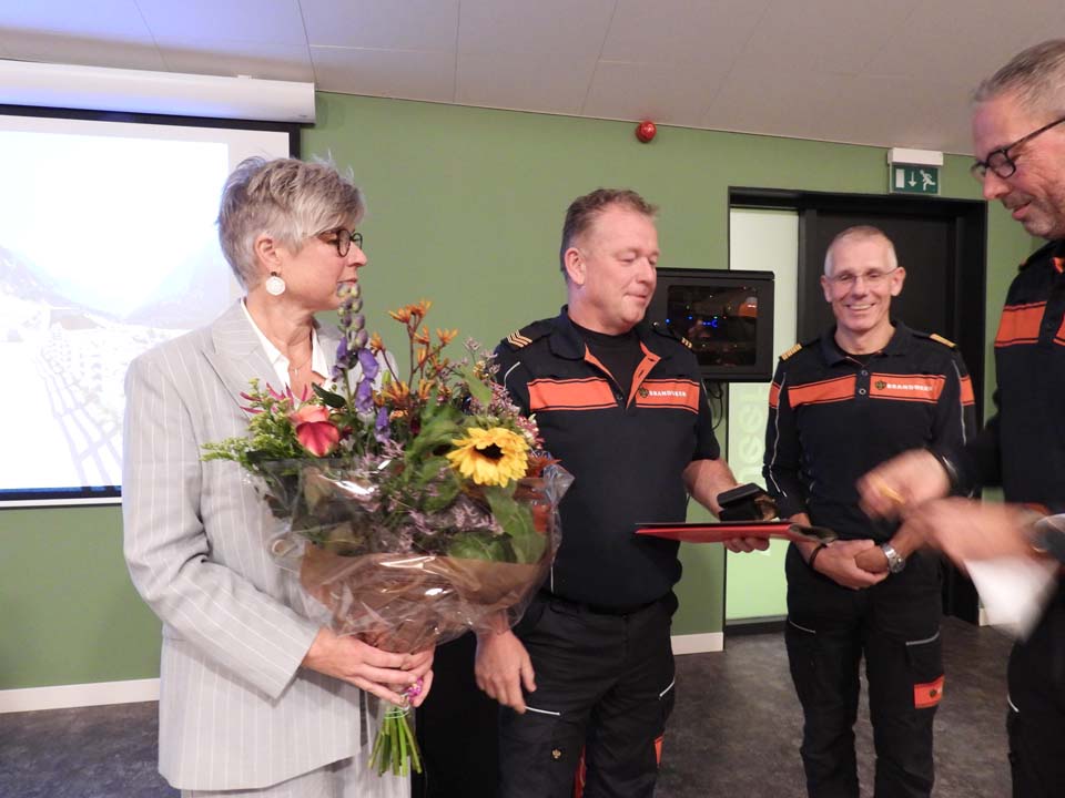 Ilona de Jonge, teamleider Incidentbestrijding van de brandweer Twente, sprak haar complimenten uit aan het Ootmarsumse brandweerkorps. Niet alleen hoe zij dit incident hebben aangepakt, maar vooral de nasleep. Eén van hun collega’s van het Denekampse korps, wilde niet meer verder leven. “De melding was een brandende auto en daarvoor zijn we uitgerukt,” vertelt de teamleider. “Dan kom je bij dit incident met al heel veel impact en naderhand hoor je wie het is. Een collega, die je bij gezamenlijke oefeningen meemaakt. Dan moet je er voor elkaar zijn en ik heb veel bewondering hoe dat in dit Ootmarsumse brandweerkorps is opgepakt. Het is dan heel belangrijk om jezelf ruimte te geven. Ook binnen het korps zijn er vele karakters. Dat betekent ook dat iedere brandweerman – en vrouw het op zijn of haar wijze verwerkt. De één praat het van zich af, de ander blijft stil en dan is samen zijn, samen praten van heel groot belang. Er zijn voor elkaar en elkaar de ruimte geven. Dat heb ik zeer zeker gemerkt na dit voorval binnen dit korps. Dat heeft ook zeker te maken met de kazernecoördinator Harald Schulten, die iedereen probeert ruimte te geven en een stimulerende rol heeft om er een echt team van te maken,” sluit Ilona de Jonge haar betoog af. Gelet op ‘de stilte’ in de zaal raakte ze met haar woorden alle aanwezigen.