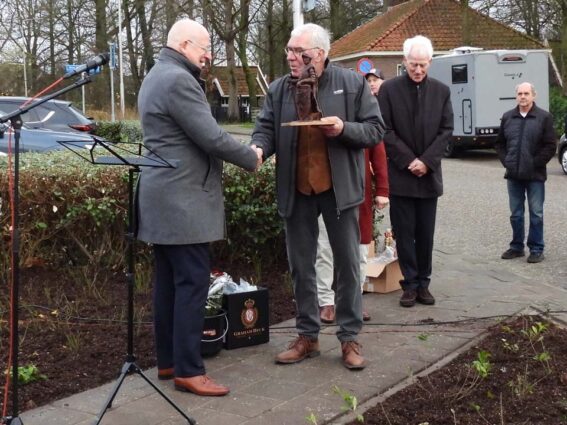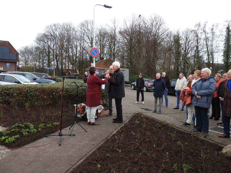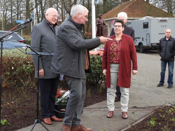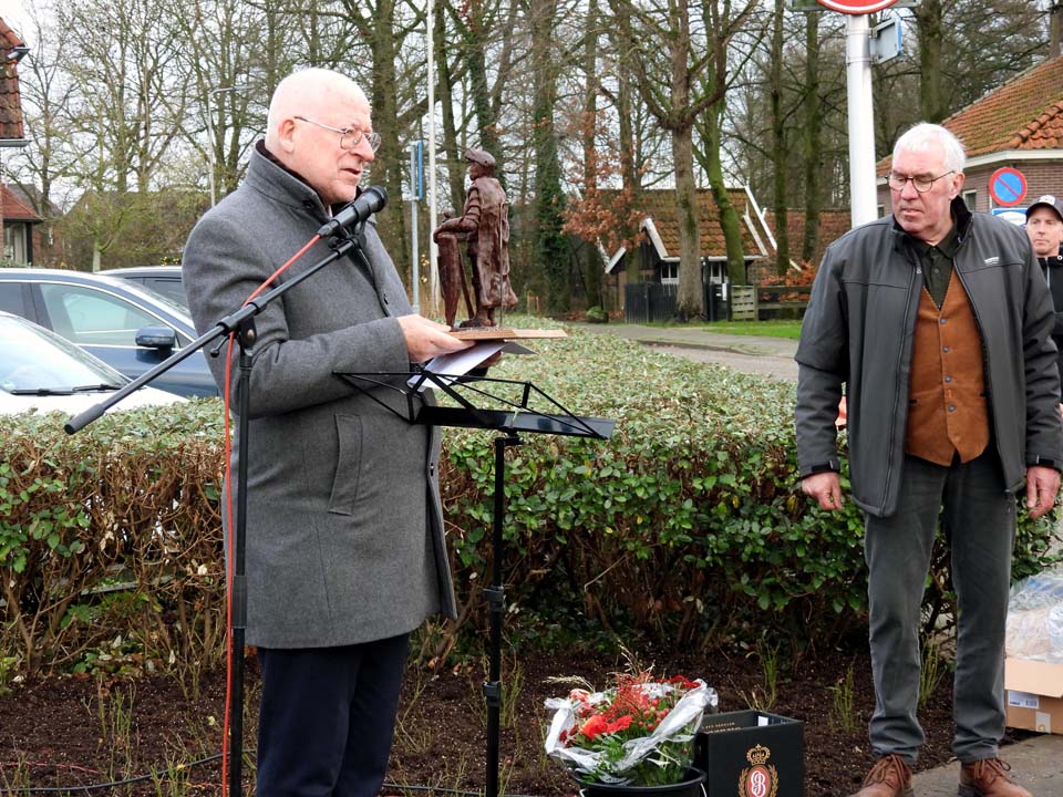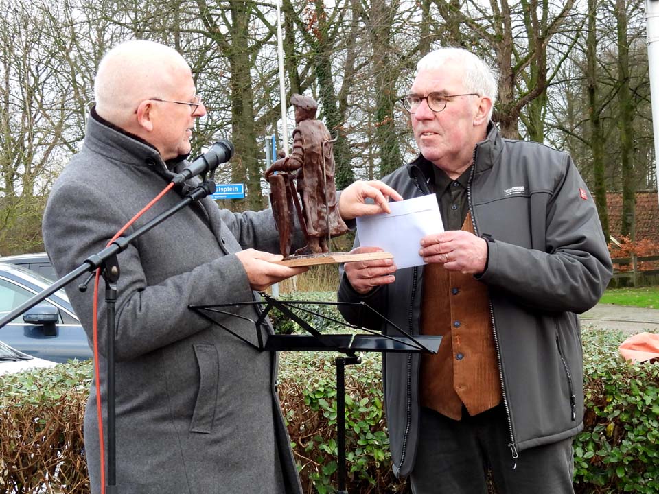 Toen Tonny zijn einde voelde naderen, wilde hij uit liefde en dankbaarheid nog iets nalaten aan Ootmarsum. Met de beide ‘Hansen’ kreeg hij twee ‘bondgenoten’, die zijn wens in vervulling lieten gaan. “Tonny liep al langer met deze gedachte. Hij belde me in september 2024 op om een keer te komen praten,” vertelde Hans Bolscher. “Ik ben naar hem toe gegaan en wat schrok ik hoe hij er fysiek aan toe was. We hebben toch fijn kunnen praten en zijn verzoek om iets aan Ootmarsum na te laten, raakte me diep in mijn hart.” Dat was ook echt te merken tijdens zijn speech, waarin hij het hele proces vanaf dat eerste gesprek tot en met het onthullen van dit beeld verwoordde. Het emotioneerde de penningmeester van de Vereniging Heemhuis met name op het moment dat hij memoreerde aan het feit dat Tonny er niet meer bij kon zijn. Ook waren er emoties bij de kunstenaar Mathilde Damhuis, die in haar kunstenaarsleven iets unieks heeft gecreëerd. Ook Berend Seiger mogen we niet vergeten, want hij heeft Mathilde vaak voorzien van waardevolle adviezen.