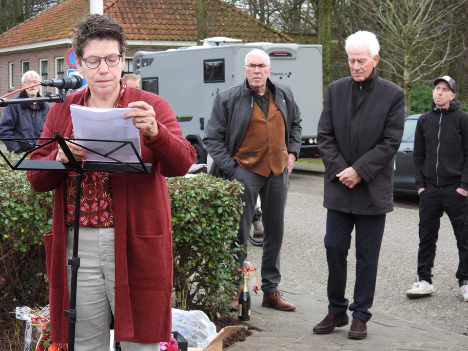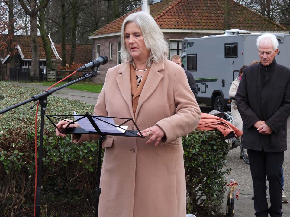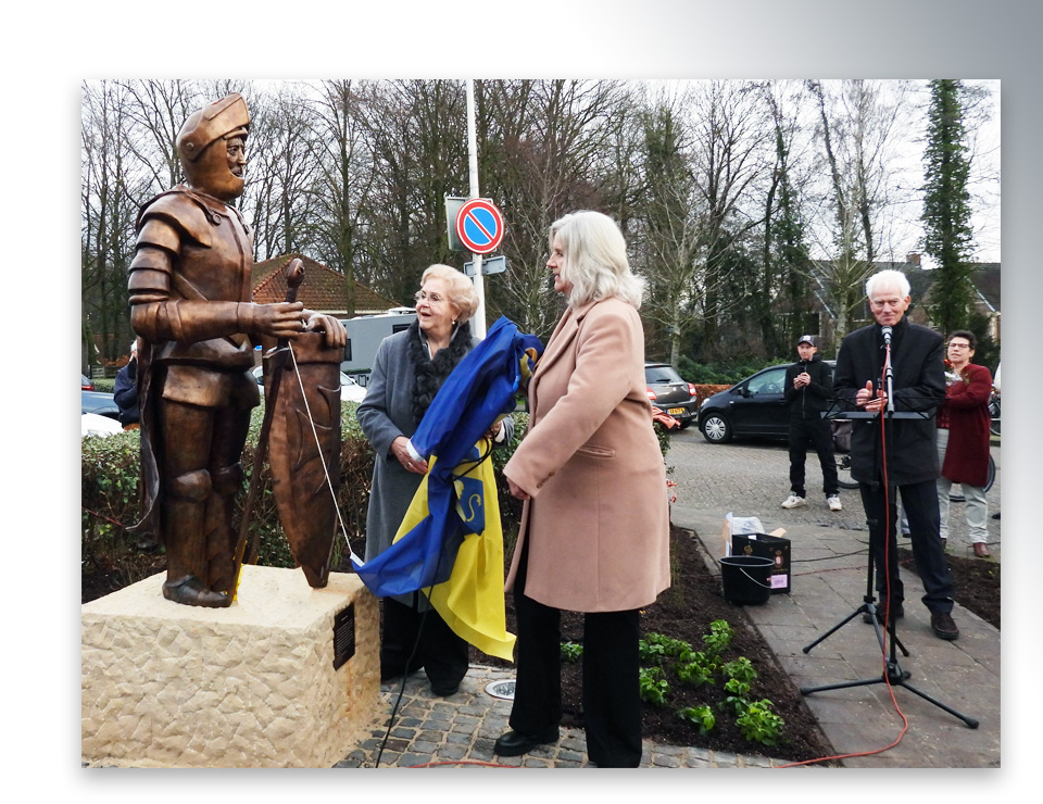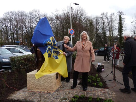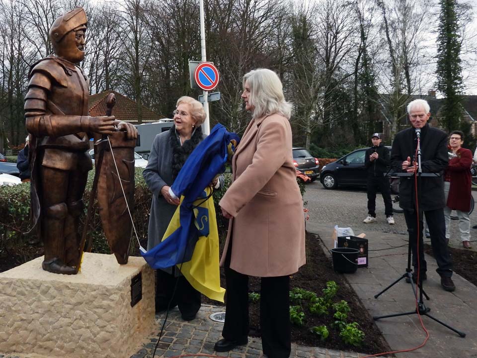 Dochter Lilian Wolthuis-Droste en Tonny’s zus Elly onthulden dit beeld dat vervaardigd is door kunstenaar Mathilde Damhuis. Er waren genodigden, maar ook veel belangstellenden aanwezig om met eigen ogen het verleden te zien herleven in dit kunstwerk.