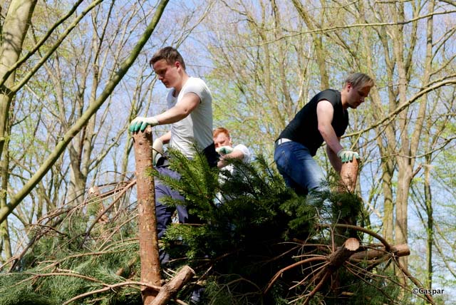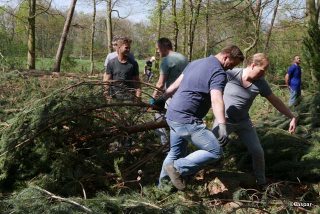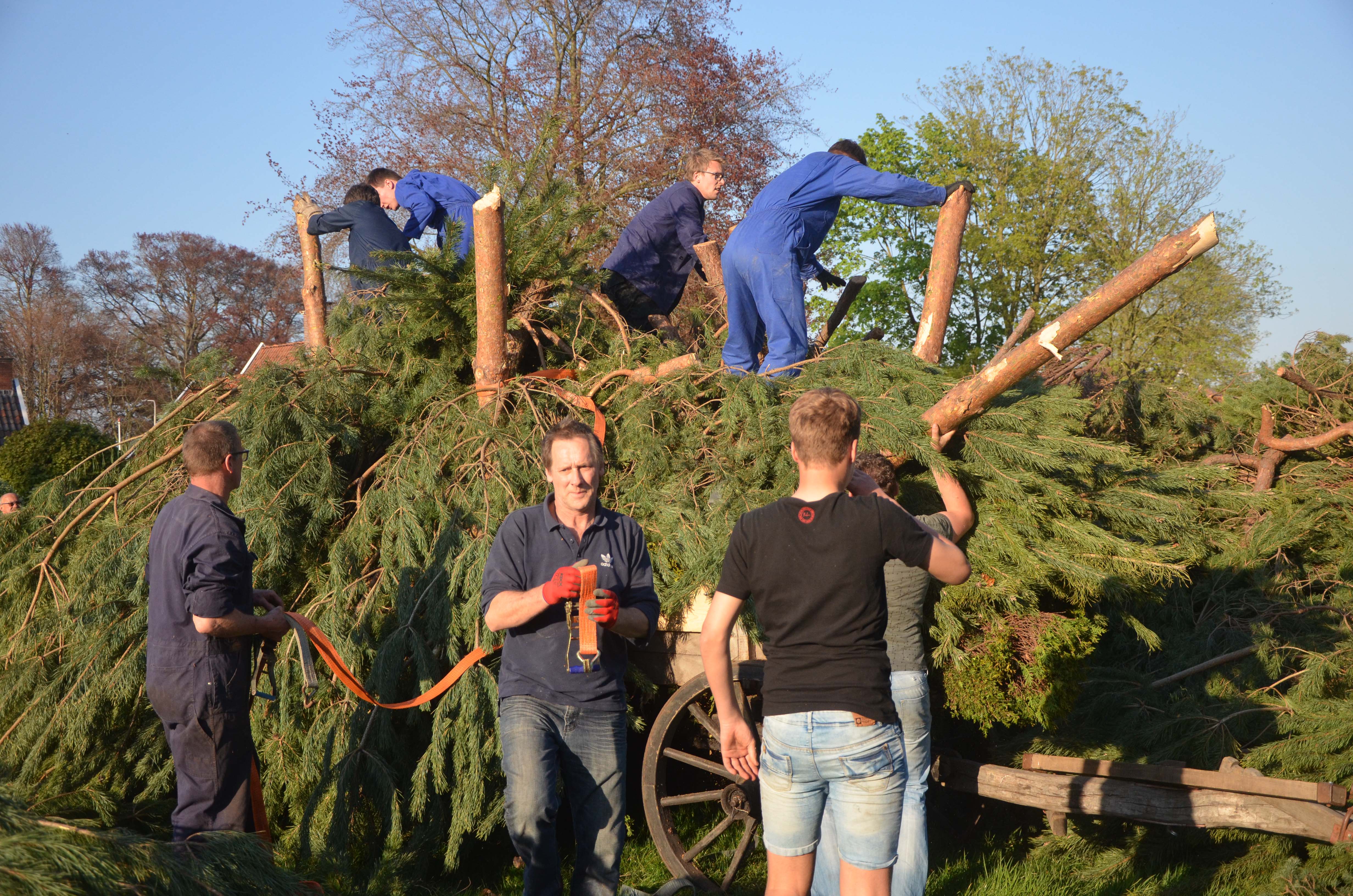 Op het Springendal lag het hout en dat werd hoog opgetast op de wagens. Dat verliep allemaal voorspoedig tot het fatale moment op de Laagsestraat. Het bleek niet te repareren en dus trokken we met de beide andere paaswagens verder. Dat verliep verder prima. We werden onderweg regelmatig aangesproken door toeristen, die zich afvroegen waar we mee bezig waren. Dat leggen we dan keurig uit, want voor de meesten is het toch wel iets nieuws wat ze trouwens heel erg waarderen. En met name het vasthouden aan deze Paastradities zorgen bij de toeristen, maar ook zeker bij de Ootmarsummers voor vele positieve reacties. Wat dat betreft kunnen we tevreden terug kijken op deze Paaszaterdag,” laat de oudste Poaskearl weten.