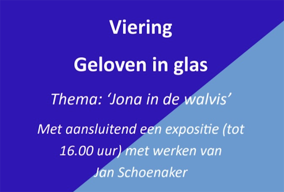 Geloven in glas is het jaarlijks terugkerende thema in de Plechelmuskerk van Saasveld ter nagedachtenis aan Jan Schoenaker. Hij is de ontwerper en maker van álle gebrandschilderde ramen van glas in lood. ‘Een gebrandschilderd raam is als een doorzichtig tussenschot tussen mijn hart en het hart van de wereld,’ liet hij ooit eens optekenen. Dit jaar is in Saasveld gekozen voor het raam ‘Jona in de walvis’. Het tafereel spreekt misschien wel het meest tot de verbeelding van mensen. Het heeft iets sprookjesachtigs …..