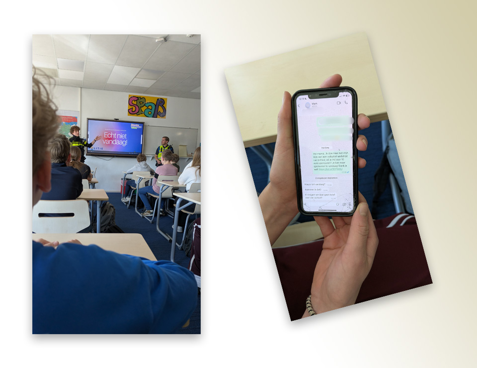 Om te laten zien hoe makkelijk je slachtoffer kunt worden, kregen de leerlingen een opdracht: stuur een testbericht naar een familielid met het verzoek op een link te klikken. Wie op de link klikte, kreeg een duidelijke waarschuwing: “Oeps, jij bent erin getrapt”. Zo ervoeren zij uit eerste hand hoe phishing werkt. Op de link werd verrassend vaak geklikt, wat het belang van deze regionale actiedag extra onderstreept.