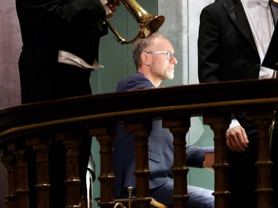 Hetzelfde geldt voor de zes jonge musici van het Sweelinck Koper Kwintet. Ook bij hen spat het plezier en enthousiasme er van af. Ze zijn met hun zessen, maar zij maken muziek voor een compleet orkest. En dat doen ze geheel op hun eigen aanstekelijke manier. Sebastiaan Haverkate spant de kroon; niet alleen op trompet maar zeker ook op zijn midwinterhoorn. Loepzuiver gaf hij een demonstratie van zijn kunnen. Bijzonder was de uitvoering van de Fantasie van een Twentse kerkmelodie speciaal geschreven voor het Sweelinck Koper Kwintet. Verschillende bekende melodieën kwamen voorbij. Ook organist Henk Verhoef speelde hierbij letterlijk zijn eigen rol.