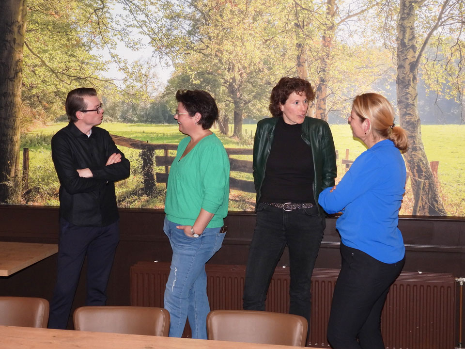 Na het bijpraten gingen de verhalen al snel weer terug naar de schooltijd. De juffen Reinders, Kölner-Kemna, Brunninkhuis en aan de Stegge en meesters Kleissen, Van Zuilekom, Van Benthem, Krüse en natuurlijk meneer Loves passeerden de revue. Het kattenkwaad, de mini-Elfstedentocht, jeugd driedaagse zorgden voor een feest van herkenning. Ook de musicals en de liedjes daarin: “Ken jij de tekst ook nog?”. Of “welke rol had jij ook al weer in het Passiespel?” Verborgen herinneringen kwamen naar boven en het ene verhaal volgde het andere op.
