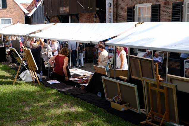 Het was een gezellige drukte op de eerste dag van Kunst in Ootmarsum. Al voor 12.00 uur stroomden de bezoekers het centrum binnen van de Siepelstad waar zo’n 200 kunstenaars hun werken lieten zien. In een gemoedelijke sfeer slenterden de belangstellenden langs de Pagodetenten en kramen. Er ontstonden mooie gesprekken en deze interactie tussen kunstenaars en de kijkers of kopers leverde vaak boeiende gespreksstof op.