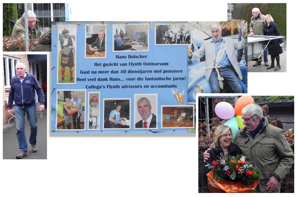 “Hans heeft zich al die jaren met een enorm plichtsbesef ingezet en niet alleen voor klanten, maar voor de gehele organisatie. Zijn makkelijke manier van contacten leggen heeft de organisatie geen windeieren gelegd. Altijd wist hij een ingang te krijgen bij de belastingen, de sociale verzekeringsbank en andere overheidsinstellingen. Op deze wijze wist hij met het grootste gemak de vele contacten in het voordeel van de klanten af te handelen. Ook voor veel collega’s was hij een vraagbaak en bedacht hij vele oplossingen van problemen,” aldus Henk Eertman.