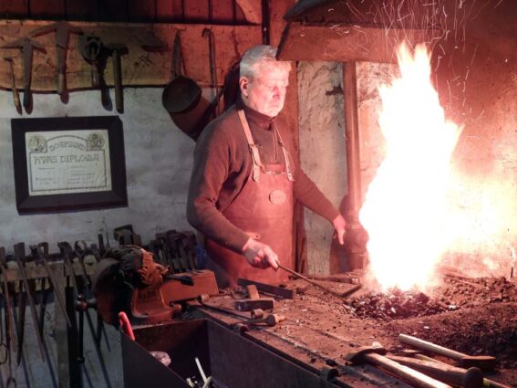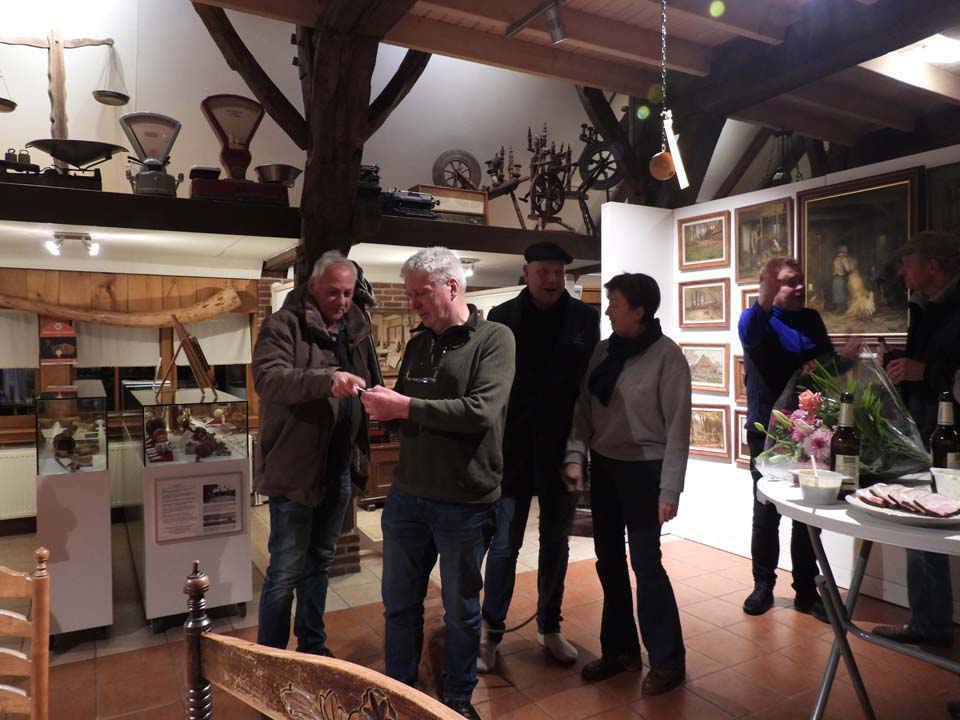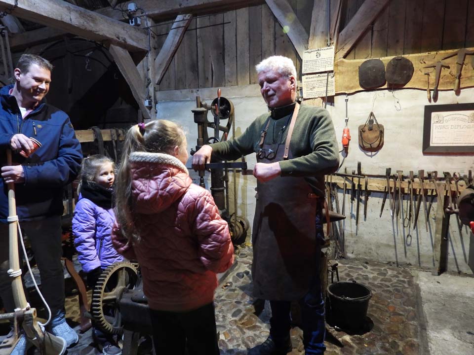 Na de avondopenstelling bij het Openluchtmuseum werd Hans in het zonnetje gest. Op dit succesvolle evenement speelde hij dit keer niet op de midwinterhoorn, maar liet hij de honderden bezoekers zien hoe als smid het ambacht werd beoefend. Ook daar straalde het enthousiasme er van af.