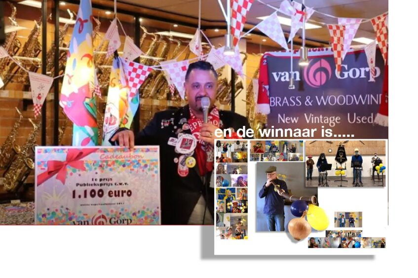 Met een echt carnavalslied ‘In de Siepelstad ’ heeft onze harmonie Caecilia het online Kapellenfestival, georganiseerd door van Gorp Muziekcentrum uit Roosendaal, met glans gewonnen. Met maar liefst 639 stemmen won het Ootmarsumse muziekkorps de publieksprijs en tevens een bedrag van 1100 euro dat beschikbaar werd gesteld door het muziekcentrum van Gorp. Er waren 16 inzendingen en in totaal brachten 5495 mensen hun stem uit.