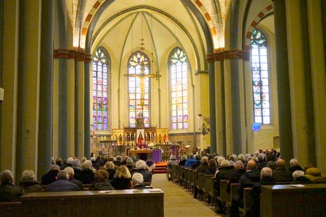Na afloop van de viering kreeg iedereen de gelegenheid de heer Elferink en zijn vrouw achter in de kerk te feliciteren en daar werd heel veel gebruik van gemaakt.