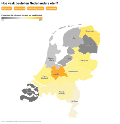 Na een lange werkdag weinig zin om te koken: we kennen het allemaal. Daarom grijpt één op de zeven Overijsselaren inmiddels standaard minstens één keer per week naar de bezorgapp. Maar waar landelijk pizza de favoriet is, bestelt men in Overijssel het liefst gewoon een patatje bij de snackbar. Dat blijkt uit een onderzoek dat Buitenkeukendeal.nl liet uitvoeren onder 1053 Nederlanders.