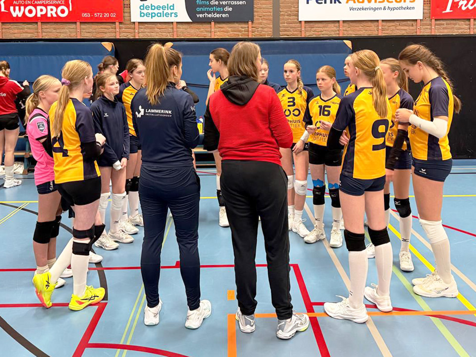 De C-meiden van Lammerink Set-Up ’65 hebben zich geplaatst voor de halve finale van de Nederlandse Open Jeugd Kampioenschappen. Ze speelden hun wedstrijden in Haaksbergen waar namens Set-Up ’65 ook Jan Eertman floot. Deze zaterdag, 3 januari, was zijn verjaardag en dus zorgde het C-team en hun begeleiders voor een met vlaggetjes versierde scheidsrechtersbok. Op deze wijze werd de jarige scheidsrechter op ludieke wijze gefeliciteerd met natuurlijk ook het ‘Hiep, hiep, hoera’. Het leverde een brede glimlach op bij Jan en natuurlijk ook bij meisjes C van Set-Up ’65 en het publiek.