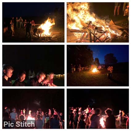 De judoka’s werden vervolgens in groepen ingedeeld. Daarna kon de Tour de Roezeberg gestart worden met als inzet ‘de gele trui’. In eerste instantie was er de zeskamp, die uit verschillende onderdelen bestond. Na een fanatiek verloop werd de eerste ‘gele trui’ uitgereikt. Tijd voor een broodje hamburger en het roosteren van marshmallows boven het kampvuur.