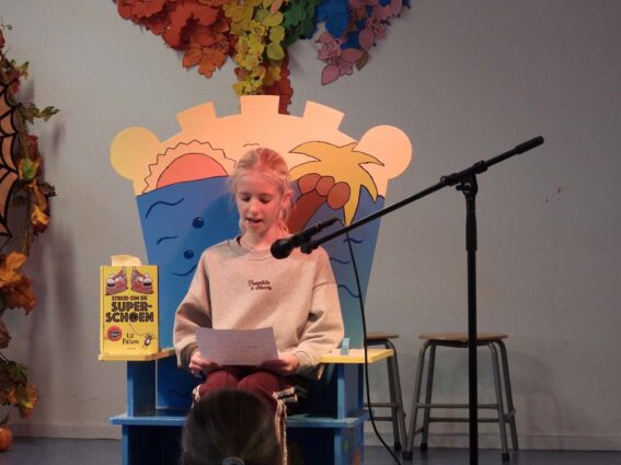 Lauren was de eerste en dat heeft zijn voor – en nadelen. Zij pakte het voordeel door heel overtuigend voor ter lezen. Over de ‘Strijd om de superschoen’. Lauren sloot af met een zin, die de spanning alleen maar opbouwde. De jury, die bestond uit Yvonne Reinalda namens de bibliotheek Ootmarsum, Rosalien Krabbe oud-leerkracht en leerkracht Nicole Nijhuis, gaven na iedere voorlezer al een mening. Het zorgde wel voor nog meer spanning en vooral voor veel positiviteit, want iedere kandidaat had zich heel goed voorbereid.