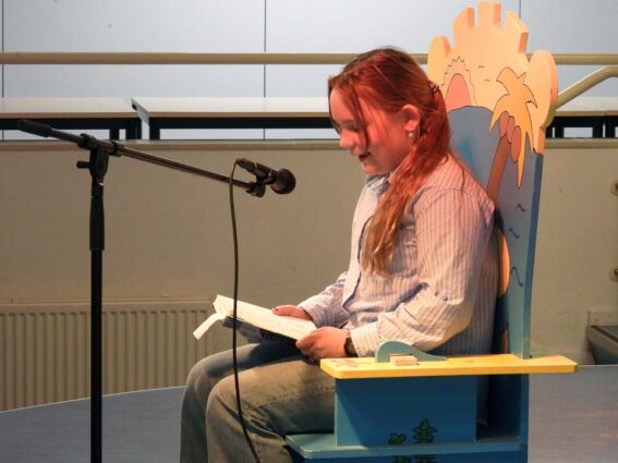 Eén van de mooie elementen tijdens deze voorleeswedstrijden is dat er hele diverse verhalen worden verteld. Boeken met humor, spanning en herkenbaarheid. Alles kwam voorbij en het zestal zorgde er voor dat alle leerlingen in de zaal aan hun lippen hingen. Lauren Heerink beet het spits af.
