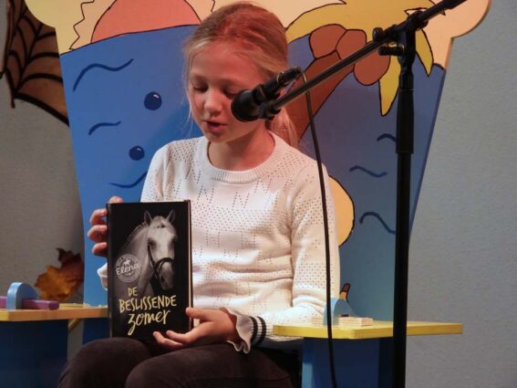 De derde kandidaat was Madelief Beltman. Zij las voor uit het boek Operatie T.O.I.L.E.T. Een voordracht vol humor en dat was zeker te merken aan de reacties uit het jonge publiek. De nodige lachsalvo’s waren er te horen en dat zorgde voor een mooie wisselwerking tussen voorlezer en publiek.