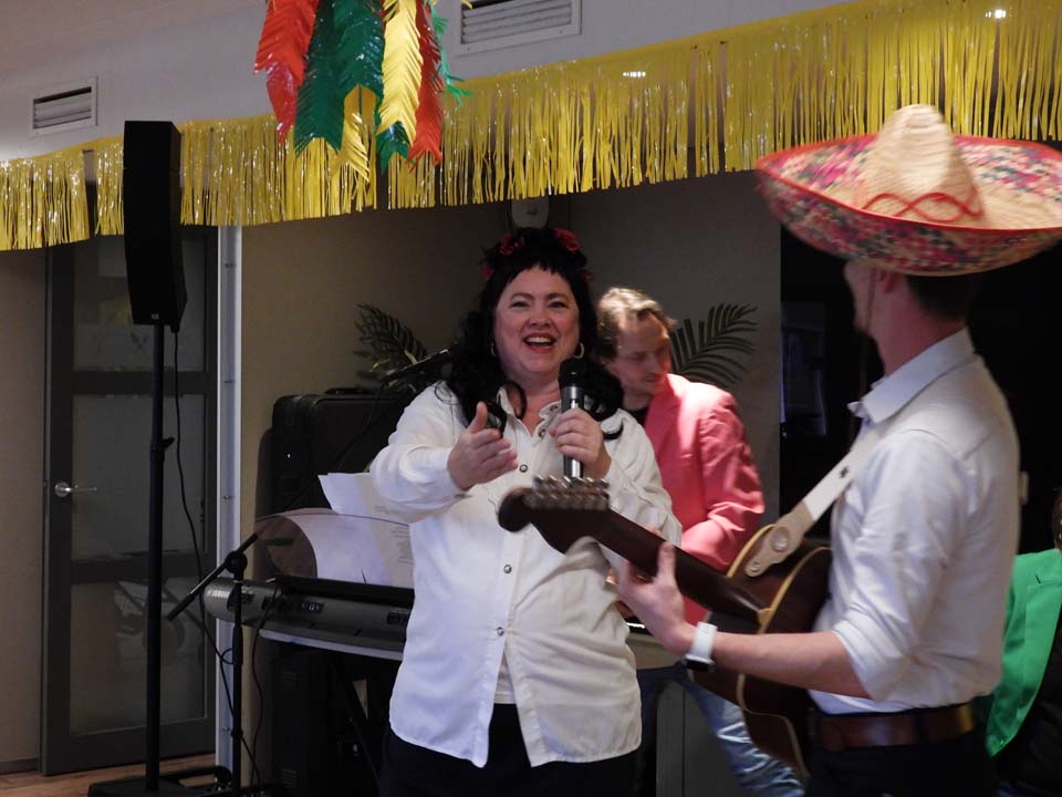 Dan komen Jacky en Martijn en playbackten het Mexico van de Zangeres zonder Naam. Een herkenbare evergreen en dat leverde een sfeervolle samenzang op. Een vast onderdeel is de bijdrage van Josephien Slotman. “Als ik ga zingen loopt de zaal leeg, dus daar begin ik maar niet aan.” Ze hield het bij twee bijdrages. De eerste ging over Liefde, Verlies en Hoop. Haar tweede bijdrage handelde over Sierra Madre del Sur. Ook dat is een absolute meezinger en wat klonk dat goed in de sfeervolle zaal van woonzorgcentrum Franciscus.