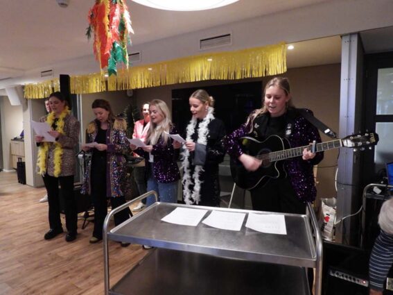 Wijkzorg Dinkelland Tubbergen brachten ‘Het kleine café aan de haven’. Dat kent iedereen en met een echte live begeleiding van een gitaar, bespeelt door één van de personeelsleden, werd het een bijzondere bijdrage. Het trio Enig en Anders en Ralph brachten een aantal meezingers.