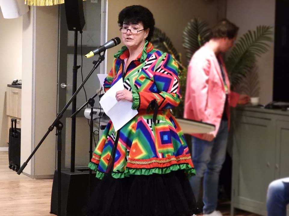 Daarna was het Renate Stevelink, die de lachspieren op de proef stelde. Humor om van te smullen en nog wat olie op het vuur tussen Ootmarsum en Denekamp.
