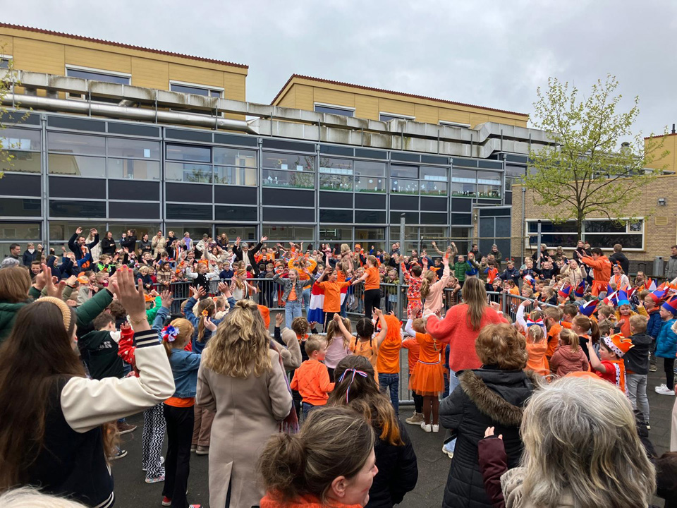 Op de vrijdag was het allemaal iets aangenamer en begonnen de leerlingen van de Meander, onder aanvoering van groep 7, met de Koningsspelen. Natuurlijk met het nieuwe liedje van Kinderen voor Kinderen ‘Dabe Die Daba Daa’ dat met veel enthousiasme door alle leerlingen, hun leerkrachten en ook vele ouders werd meegedanst, geklapt en waar het kon gezongen. Daarna volgden er allerlei spelen en werd deze week vol gezelligheid afgesloten. Nu twee weken vrij en gelet op de weersverwachtingen kunnen dat wel eens hele mooie weken worden.