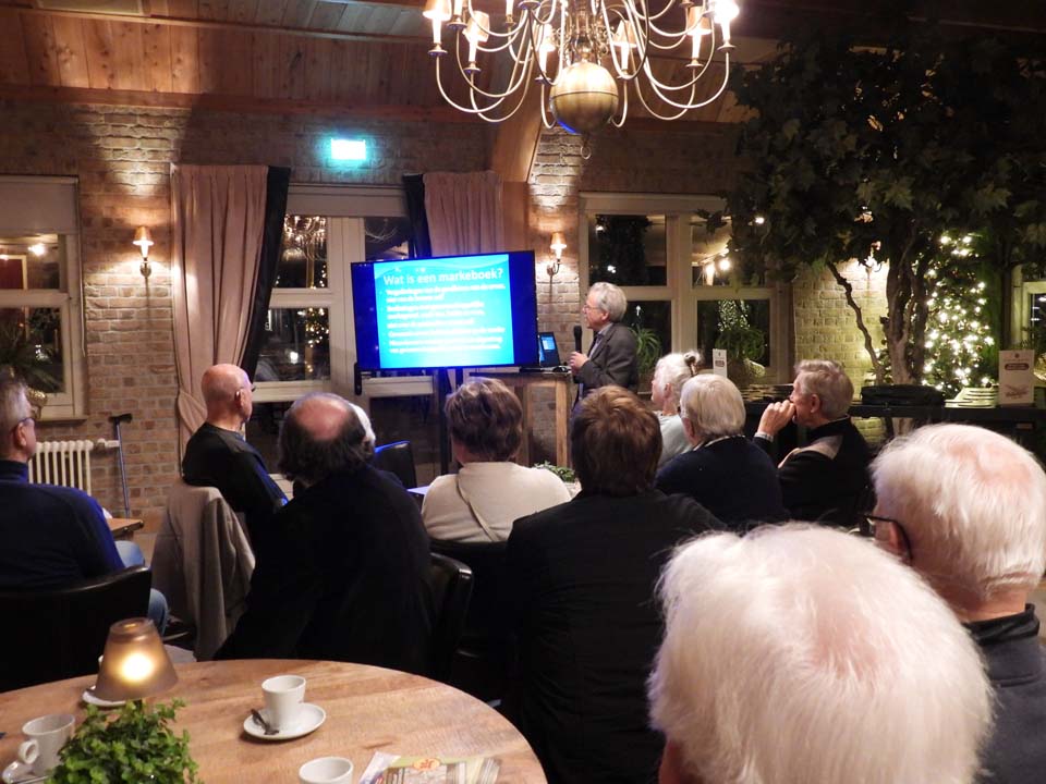 De auteur, wetenschapper Henk Koop, presenteerde zijn inmiddels 5e Markeboek voor een publiek van rond 90 leden en donateurs van Heemhuis Ootmarsum. Hij lichtte toe wat een Markeboek is. Hij heeft oude 18e eeuwse handgeschreven verslagen over de marken Nutter en Oud Ootmarsum leren lezen en deze vertaald in modern Nederlands.