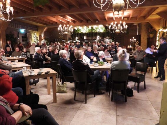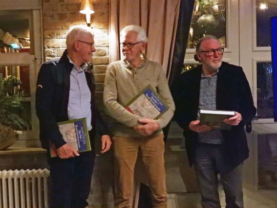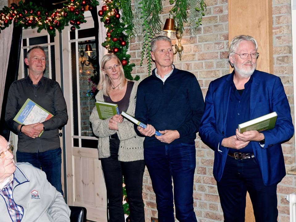Nettie Aarnink, de voorzitter van Heemhuis Ootmarsum, feliciteerde de auteur met een kerstkrans van chocolade. Dennis Kokkelink verraste ze met het eerste exemplaar van dit Markeboek. Zo ook de leden van het ijzersterke markeboekteam bestaande uit creatieve vormgever Ap Aalbers en redactieleden Jan en Gerard Derkman. En de vier sponsoren: wethouder Cel Severijn namens de gemeente Dinkelland, Marcel Horsthuis en Kees Jan Westra namens Staatsbosbeheer, Peter Zanderink namens het Rabo Coöperatiefonds en Karin de Clou namens Stichting Landschap Overijssel. Ze besloot de avond met de hoop dat het Markeboek Nutter Oud Ootmarsum allen zal inspireren om beelden, geschriften, aktes en verhalen te delen met de vereniging Heemhuis en deze vooral niet op zolder te laten liggen.