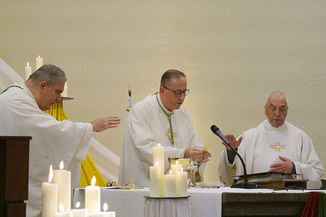 Liefst twee bisschoppen waren voor het jubileum naar Denekamp gekomen: Herman Woorts van Utrecht en Ronald Cornelissen van het bisdom Groningen-Leeuwarden. Voor de nieuwbakken bisschop Cornelissen was het de eerste keer dat hij in zijn nieuwe functie terugkwam op het voor hem oude en vertrouwde grond. Hij was immers eerder vele jaren pastoor in Denekamp en omgeving. Woorts en Cornelissen werden gecompleteerd door oud-deken André Zegveld, de pastor van het klooster. De beide bisschoppen maakten duidelijk dat het klooster van Denekamp voor hen ‘bekend terrein’ is en dat ze er geregeld en ‘met veel plezier’ komen. Met gloedvolle betogen drukten zij hun grote waardering uit voor het vele werk van de zusters in de afgelopen 150 jaar.