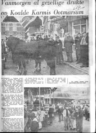 ‘Vanmorgen al gezellige drukte op Koalde Karmis Ootmarsum’ kopte de krant op 6 november 1970. De dagbladen werden destijds nog ’s middags bezorgd en dus kon het nieuws van de kermisvrijdagmorgen al meteen dezelfde dag gedeeld worden. Ook toen een paardenmarkt en een foto van de jeugd bij de draaimolen van Gigengack. Hoe mooi is het om in het archief van de Koale Karmis te duiken. Voor alle kermisliefhebbers, veel plezier dit weekend.