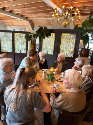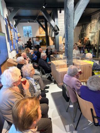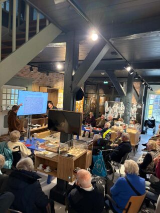 Bij aankomst werden we hartelijk ontvangen door de vrijwilligers van het Heemhuis. De geur van verse koffie en krentenwegge zorgde meteen voor een gemoedelijke sfeer. Nettie Aarnink, voorzitter van het Heemhuis, opende de ochtend en vertelde vol passie over het ontstaan van het Heemhuis: een plek, die met veel betrokkenheid is opgebouwd en inmiddels wordt gezien als een absolute aanwinst voor Ootmarsum en omstreken.