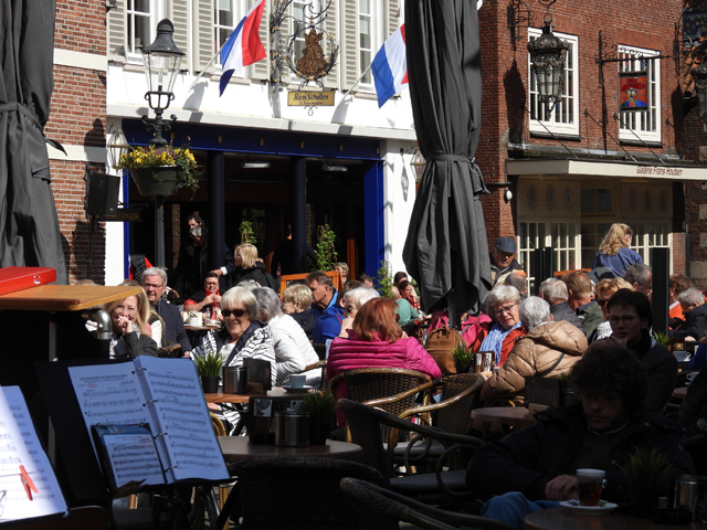Harmonie Caecilia zorgde onder leiding van Nikki Kleijsen en dirigent Jan van der Sluis van de slagwerkgroep voor een afwisselend concert dat zeer gewaardeerd werd door de belangstellenden op het gezellige terras op de Markt. Iedereen vond het fijn dat het evenement weer door kon gaan en de leden van de harmonie en de slagwerkgroep reageerden enthousiast op het feit dat ze weer eens voor publiek mochten spelen.