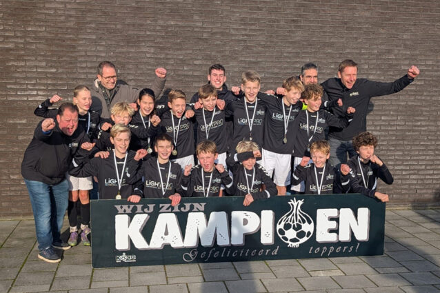 De jongens en meiden van KOSC JO13-1 zijn er op overtuigende wijze in geslaagd om het kampioenschap in de eerste klasse binnen te halen. Op de laatste speeldag van de 7 wedstrijden tellende competitie werd zeer overtuigend afgerekend met middenmoter PH JO13-1: 7-0. Door dit tweede kampioenschap op rij, promoveert het team naar de hoofdklasse, een prestatie van formaat!