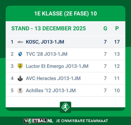 Voordat deze fase zal aanbreken is er nog een mooi affiche op 17 januari 2026, want dan zal het team JO13-1 aantreden in de knock-outfase van de beker. Tegenstander is dan Lemelerveld JO13-1. Deze wedstrijd wordt in Ootmarsum gespeeld.