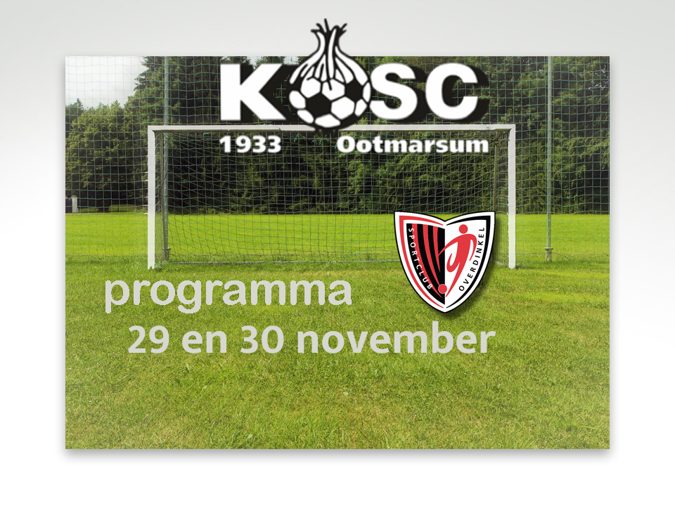Het eerste van KOSC reist zondag 30 november naar Overdinkel. Ze spelen dan tegen de kampioen van het vorige seizoen in de Vijfde Klasse. KOSC wist via de periode te promoveren. SC Overdinkel draait wat beter dan de Ootmarsumse club en heeft na 8 wedstrijden 5 punten voorsprong op KOSC. Beide teams draaien een wisselvallig seizoen, maar Overdinkel won afgelopen zondag wel van Saasveldia. KOSC verloor thuis met 4-0 van De Lutte. De zwart-witte kunnen nog niet beschikken over Dirk Huusken, Robbie Schulten en Bill Kottink. De wedstrijd begint op het bekende tijdstip van 14.00 uur. Hieronder het volledige programma: