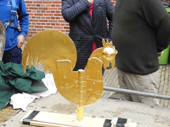De Protestantse Kerk in Ootmarsum is weer voorzien van de haan, die de toren ‘kroont’. Koster Hans van Duijn plaatste de prachtig gerestaureerde haan op zijn vertrouwde plek. Eind oktober werd de haan er af gehaald om gerestaureerd te worden en te voorzien van bladgoud. Door de Corona perikelen en het opnieuw bestraten van de Ganzenmarkt duurde het langer dan gepland, voordat deze windvaan terug te vinden was op de bekende stek.