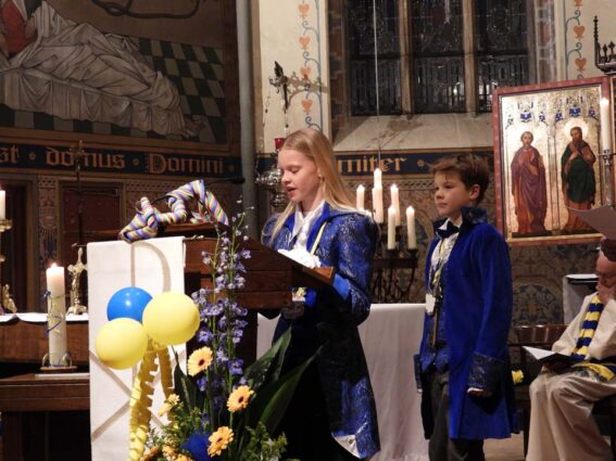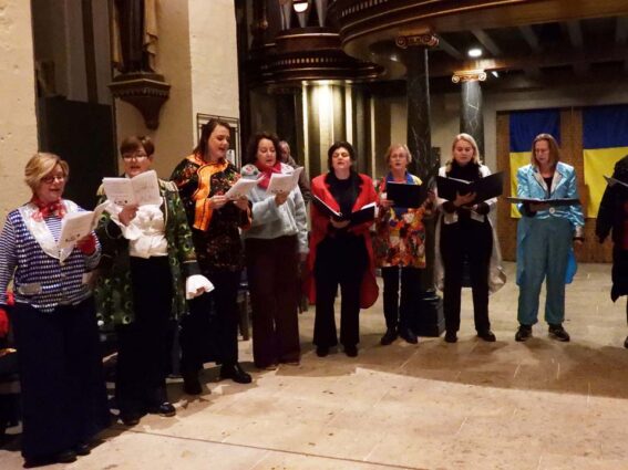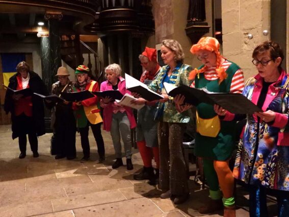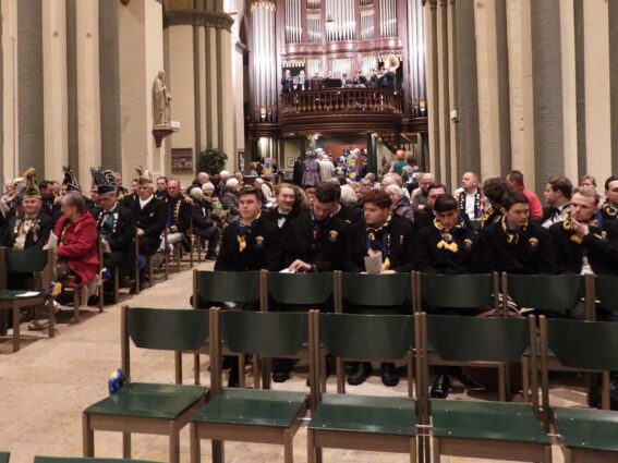 De hoogheden van ’n Baoken en de Meander legden vervolgens bloemen bij de grafkelder en in het Mariakapelleke. Een mooi gebaar en vooral dat de jongste generatie dit voor haar rekening nam. Het Themakoor liet vervolgens het ‘Love Shine a Light horen. Dirigent en pianist Christo Geunov begeleidde deze dames op voortreffelijke wijze en ook de afstemming met de Dakkapel leverde muzikale hoogtepunten op.