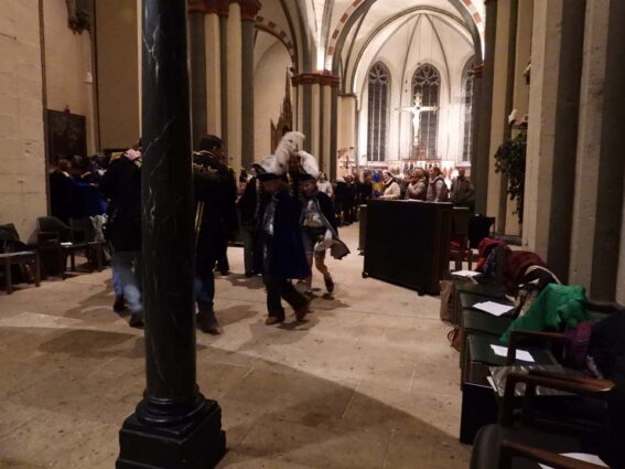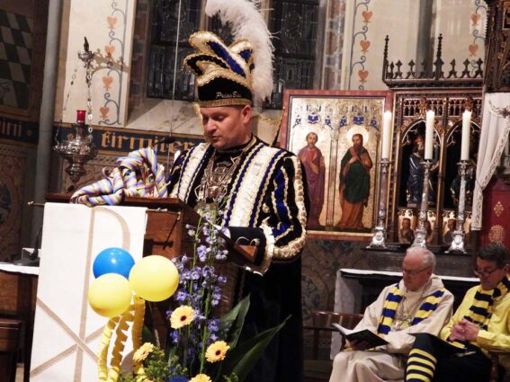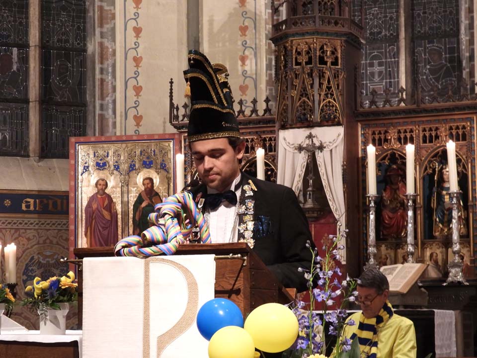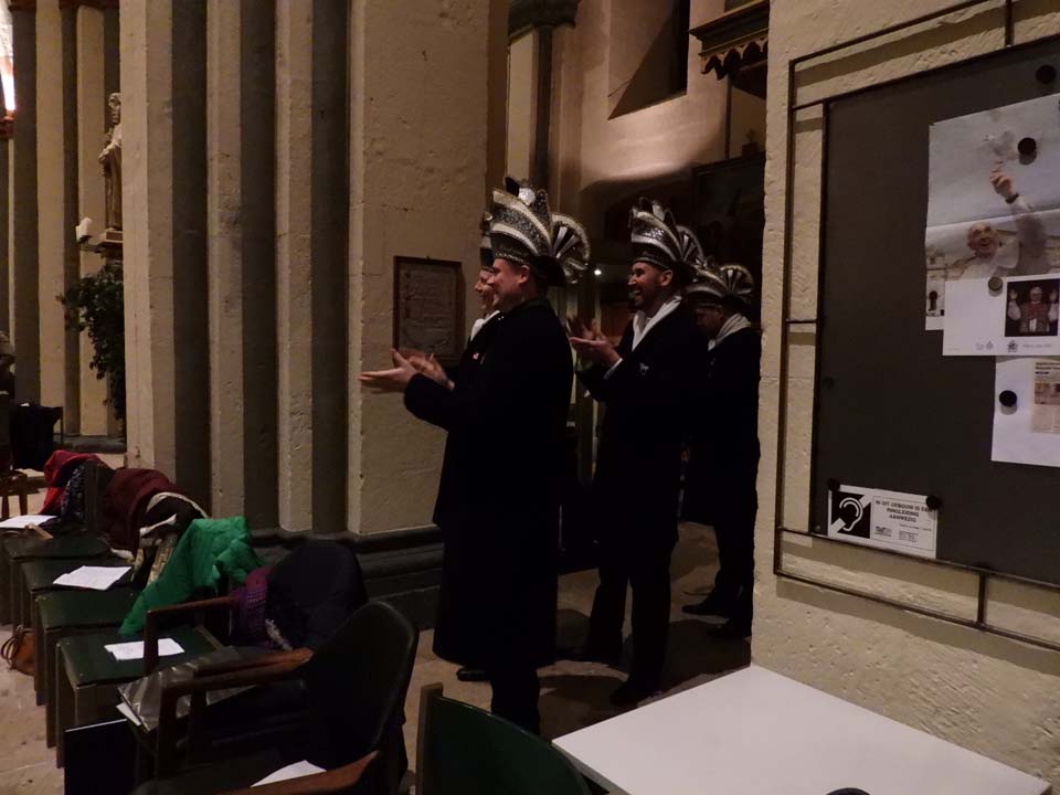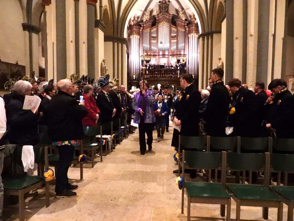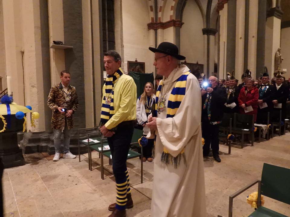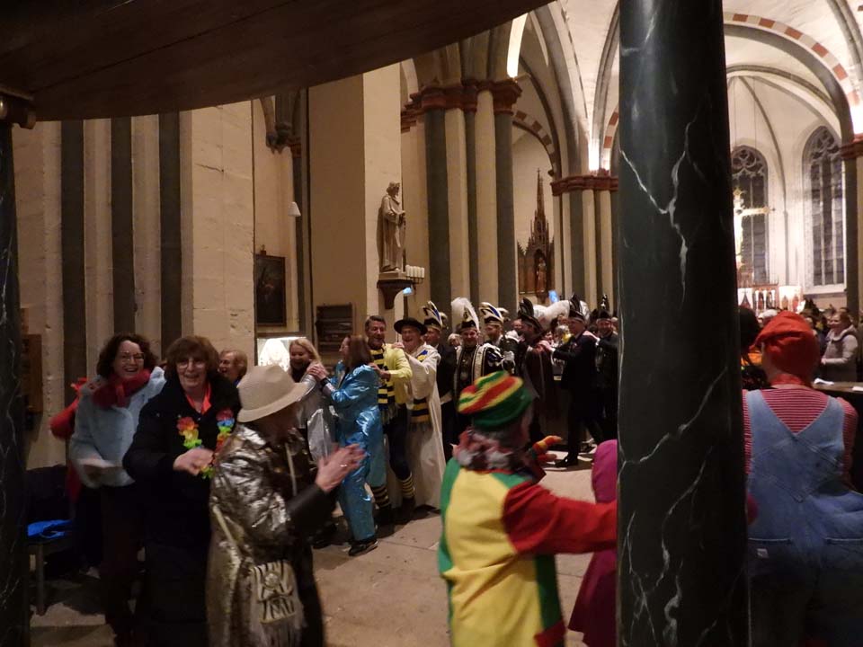 Pastor Jan Kerkhof Jonkman had zijn overweging volledig in rijm op papier gezet. Prachtig om het zo te horen en vooral liet de pastor weten dat saamhorigheid van heel groot belang is. Niet alleen met carnaval, dus hoopte hij dat ook na het Zottenfeest carnavalisten in de kerk blijven komen. Niet alleen voor het askruisje, maar zeker ook om de Kunnigheid in het geloof te blijven ervaren.